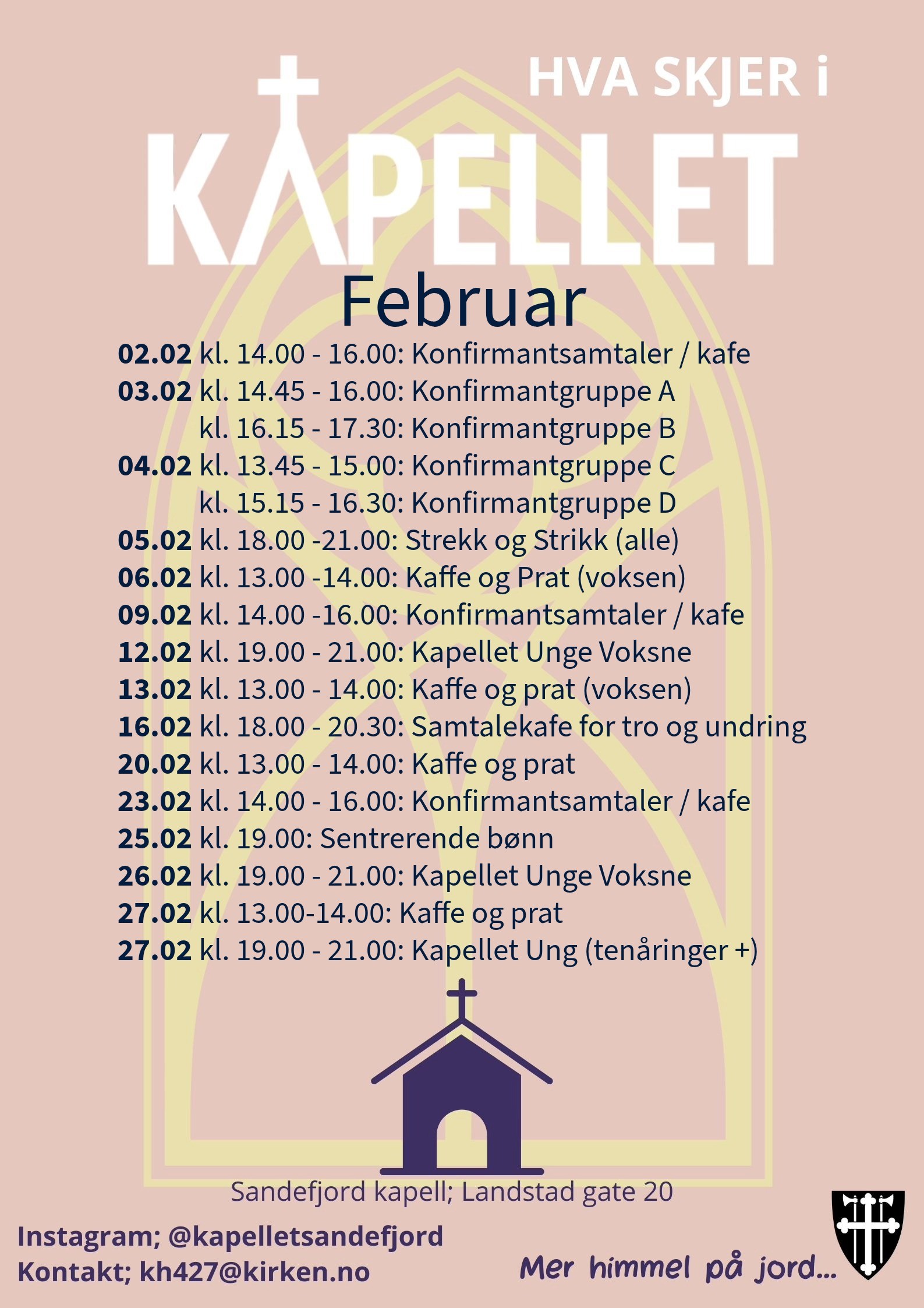 Her kommer en oversikt over hva som skjer i Kapellet.