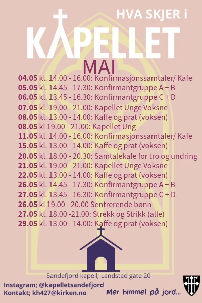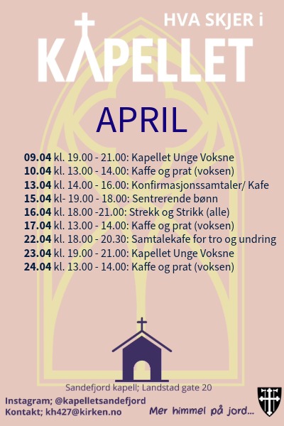 Vi går i gang med aktiviteter og åpningstider for alle aldre denne våren. Se gjerne vår Instagram (@kapelletsandefjord) for mer info.