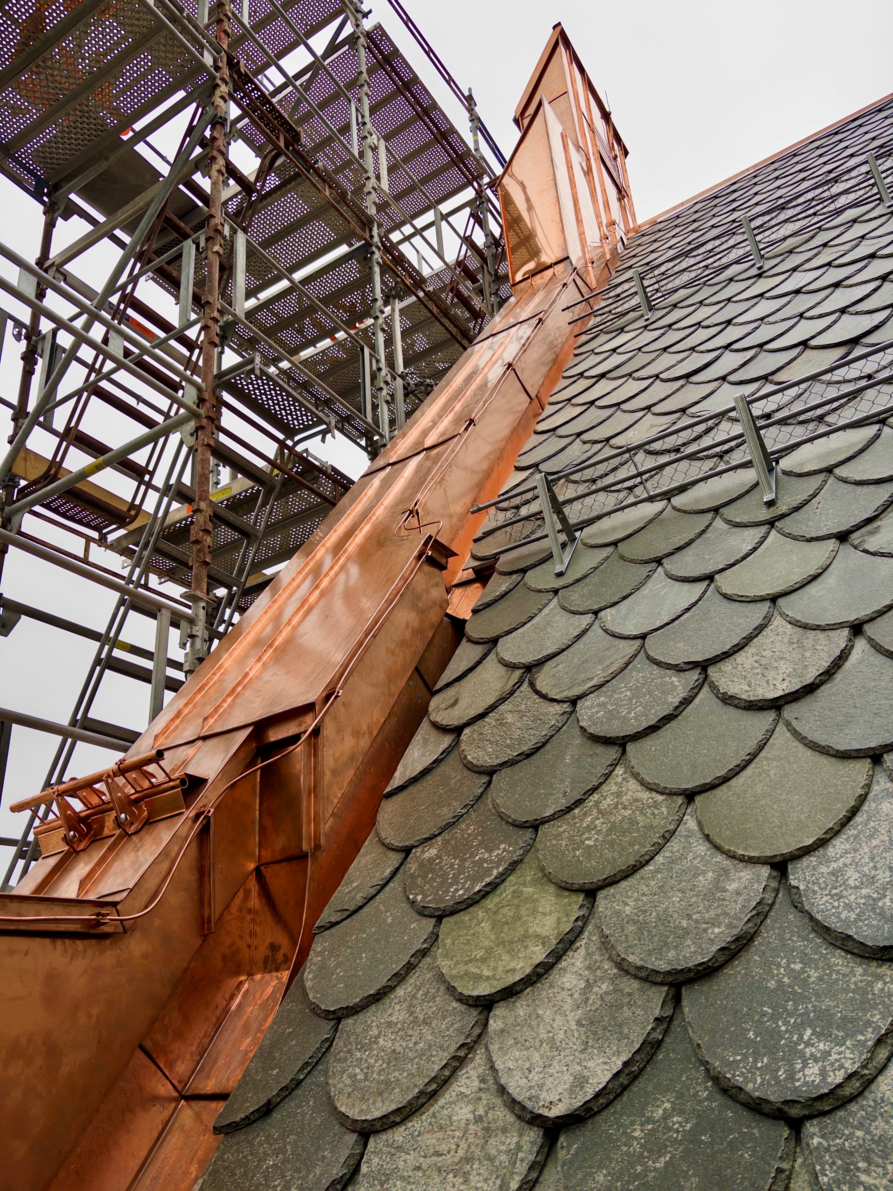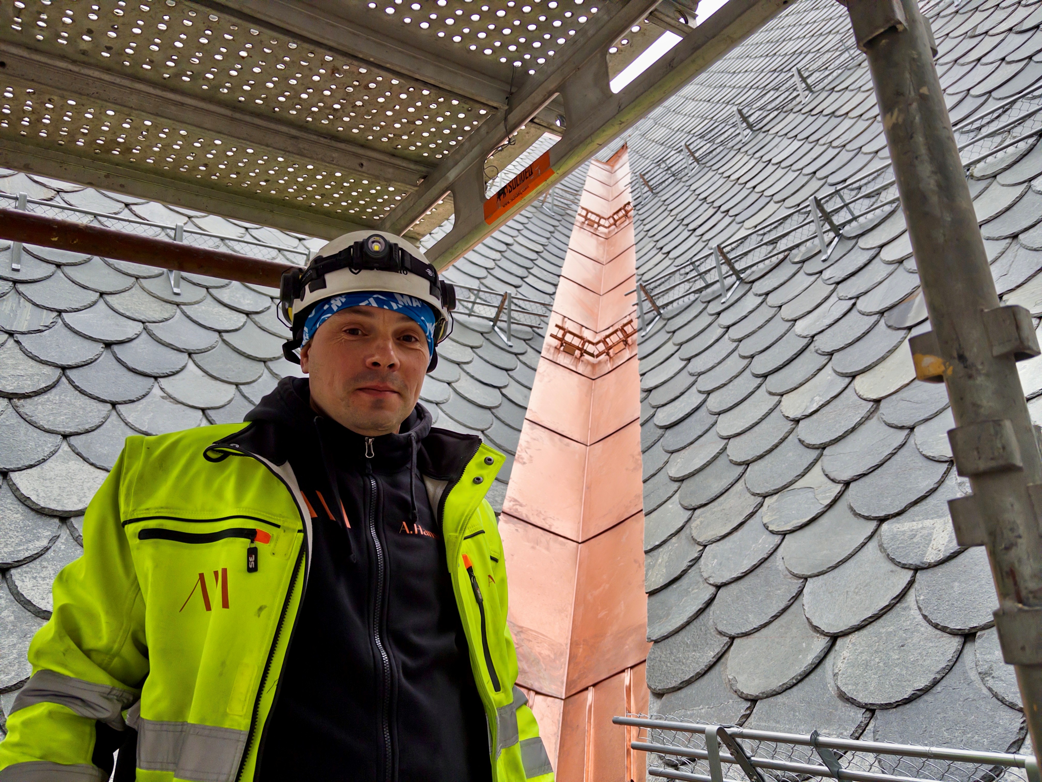 Rett før håndtverkerne tok juleferie fikk undertegnede være med prosjektleder Aleksander Leiten på en befaring av taket. Leiten er fra Estland og utdannet blikkenslager og leder arbeidet med fornyelsen av taket.